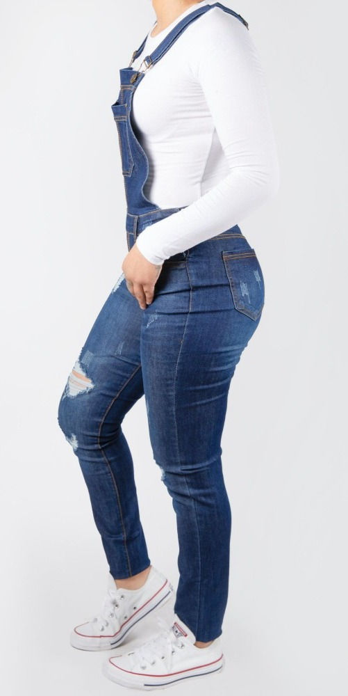 Women's Classic Dark Blue Distressed Skinny Denim Overall's